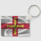 Porte - clé avec le drapeau de Guernesey dans un style de tissu ondulé. Ce design présente les couleurs du drapeau de Guernesey et un design avec un bel effet texturé de matériau de tissage. Ce design de drapeau est une excellente façon de vous montrer fier d'être de Guernesey.