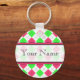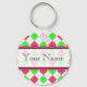 Un porte - clé avec un arrière - plan Jacquard rose chaud et vert citron avec garniture rose chaud. Personnalisez avec votre nom sur la section centre.