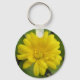 Ce magnifique porte - clé présente une photo détaillée d'un marigold jaune vif. La photographie a été prise en macro et montre un contraste saisissant entre cette fleur jaune vif et ses feuilles vert foncé.
