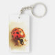 Ce porte - clé acrylique de nature présente une coccinelle (Coccinellidae) aussi connue sous le nom de coccinelle, dame vache ou dame coléoptère, avec des taches rouges, orange et jaunes et des taches noires. Cet insecte est un ami célèbre du jardinier qui se nourrit de pucerons et d'autres parasites du jardin.