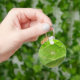 Ce beau porte - clé présente une photo détaillée d'une petite araignée de jardin assise sur une feuille de brocoli. La minuscule créature est presque transparente. La photo est si détaillée que vous pouvez même voir quelques brins de la toile des araignées.