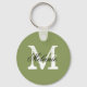 Porte - clé monogramme personnalisé moss vert nom personnalisé personnalisé. Lettre initiale vintage avec élégante typographie de script. La fête mignonne privilégie l'idée cadeau porte - clé. Faites votre propre cadeau monogrammed pour mariage élégant, douche nuptiale, bachelorette, week-end de fille, fiançailles, anniversaire etc. Amusant pour être mariée, demoiselle d'honneur, fille de fleurs, mère de la mariée, mère du marié, etc. Vert olive et blanc.