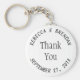 Porte - clés personnalisés avec des noms à utiliser comme faveurs de mariage. Personnalisez le texte courbe en haut et en bas, imprimé avec le texte "merci" au centre. Achetez ces porte-clés en vrac pour un rabais. Voir ceci comme un autocollant / favoriser étiquette ci-dessous.