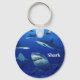 Le porte - clé est représenté avec une photo de requins dans les profondeurs de la mer. Customisez cet objet ou achetez tel quel. Image stock