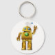 Les robots peuvent être amicaux comme le prouve cette conception. Ce design est un robot amical qui est debout et agitant. Le robot est doré et a un bouton vert sur la poitrine et les yeux verts. Ce robot convivial a l'air très bien sur ce porte - clé. Parfait pour vous-même ou comme cadeau