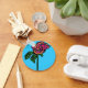 Ce joli porte - clé présente un rose coloré sur un arrière - plan bleu ciel