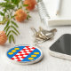 "Azur, un chou pâle et argent entre six bezants en trois pâles." badge de l'officier de direction pour l'échiquier d'un groupe au sein de la Société pour l'anachronisme créatif.