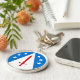"Azur, sur un pieu inversé entre six paillettes en annulo argent, en pale pale une paillette de même."