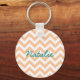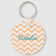 Hip et Porte - clé moderne tendance Chevron. Ce porte - clé cool est doté d'un motif en zag zig de chevron en corail et blanc. Ajoutez du texte à cette conception pour lui donner une touche personnelle.