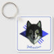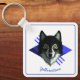 Ce porte - clé de style métal est présenté avec un design d'impression de loup de Yellowstone. Customisez cet objet ou achetez tel quel. Choisissez parmi plusieurs styles. Image stock