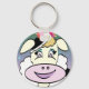porte clés basique, rond, avec le joli portrait d'une vache quelque peu exentrique mais adorable... illustration originale
