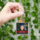 Photo et porte - clé faits sur commande d'obtention du diplôme d'année en rouge cramoisi élégant et moderne, motif floral classique noir et blanc de damassé. Ajoutez votre propre photo pour un souvenir ou un cadeau unique de diplômé.