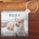 Un simple porte - clé de mémorial photo d'animal de compagnie, avec votre nom de chien ou de chats, votre photo préférée et le texte 'Forever in our Hearts' avec une petite petite pawprint mignonne. Des superpositions ont été ajoutées pour faciliter la lecture du texte.