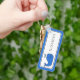Ce mignon porte - clé présente une baleine à l'effigie bleue. Personnalisez avec votre choix de nom sur le devant et les coordonnées sur le dos.