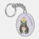 Joli porte - clé amoureux des chats fait en lavande avec l'aquarelle d'un chat tuxedo souriant et portant des bijoux et une couronne. Personnalisez le texte noir pour lire ce que vous voulez.
