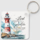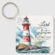 Porte - clé avec une citation inspirante, les écritures représentent un phare rouge et blanc sur un littoral rocheux de l'océan. Il présente une Bible Verse Psaume puissante et encourageante 27:1 : "L'Éternel est ma lumière et mon salut; Qui craindrai-je? L'Éternel est la force de ma vie; de qui aurai-je peur?