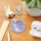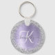Easily personalize this trendy chic keychain design featuring pretty silver sparkling glitter on a purple brushed metallic background.