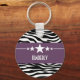 Porte - clé moderne et tendance Sassy Star Zebra avec un arrière - plan design en papier zèbre noir et blanc et une bordure violette audacieuse ornée d'un motif étoilé amusant. Ce design girly peut être customisé avec le texte personnalisé de votre choix. Cliquez sur "Customiser" pour trouver d'autres options de personnalisation.