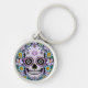 Un crâne de sucre avec coeur, des pierres précieuses, des fleurs et beaucoup de violet en font un crâne coloré que tout le monde aimera!