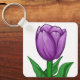 Pretty handpainted purple tulip and green leaves against white background. Purple Monogram on backside with black geometric sqaure. Designed for Aluminum Square style.