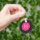 Un motif en quatrefoil noir et blanc a un cadre monogramme en quatrefoil rose chaud pour customiser avec votre initiale.