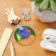 For tropical bird fans! Round, aluminum style keychain that features the photo image of a colorful, blue-headed Rainbow Lorikeet parrot with red eyes. Image printed on both sides of keychain.