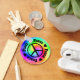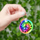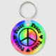 Porte - clé Paix & Amour - signe de paix et coeurs sur un arrière - plan en spirale arc-en-ciel.