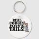 Un merle bleu Cardigan Welsh Corgi tremble la queue tandis qu'il penche sur le texte "Real Corgis have Tails !" Funny corgi porte - clé est parfait pour le propriétaire du cardigan.