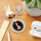 Un keychaining avec une jolie illustration de renard orange à l'intérieur d'un cercle noir. Il porte aussi un chapeau de santa rouge et a des accents de décoration vert festif sur la queue et sur la poitrine.
