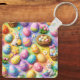 Carry a little bit of Easter fun everywhere you go with this charming keychain from the Rex and hoot series featuring our adorable owl friends dressed as bunnies surrounded by colourful eggs and flowers