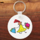 Une fille heureuse en robe jaune faisant du shopping. Cette conception semble vraiment efficace sur ces Porte - clés
