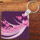 Porte-clés Romantique Abstrait Coeurs Rose Design Sur Violet