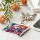 Scène du balcon de la tragédie Roméo et Juliette de William Shakespeare. Peinture originale contemporaine à l'aquarelle avec feuille d'or et couleurs iridescentes en violet vif, rose, vert, jaune orange, sarcelle, turquoise, blanc. Peinture de Bulgan Lumini (c)