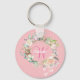 Porte-clés Rose Floral Initial Script Monogramme rose