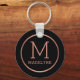 Ce porte - clé personnalisé présente un design de bordure en or rose sur un arrière - plan noir. Personnalisez-le avec votre nom et votre initiale.