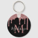 Porte-clés Rose noire à paillettes dorées Monogramme