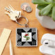 Restez à la mode avec cette élégante porte - clé de carré motif aux géométriques noir et blanc, à la rose rouge chic. Personnalisez ce chevron graphique et ce design pois en ajoutant votre nom.