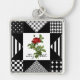 Porte-clés Rose rouge géométrique noire et blanche avec nom