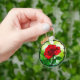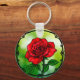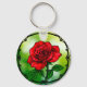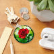 La rose rouge vibrante est centrée dans un cadre noir orné, posé sur un fond flou vert doux, créant un contraste saisissant qui met en valeur la beauté de la fleur.