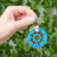 Voyages en bois vintage détaillé Roue ou Helm, idéal pour les propriétaires de bateaux et les marins avec un arrière - plan bleu océan.