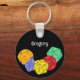 This keychain has colorful illustrations of fantasy game style dice with 4-sided, 12-sided and 20-sided dice set against a black background. Above the graphic is a spot to add a name or other custom text. Perfect for fans of different RPG games and board games.