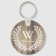 Pretty rustic farmhouse style barn wood planks print key chain with white laurels and personalized monogram and name.