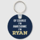 Bien sûr je suis génial Je suis Ryan en blanc et jaune doré majuscules sans serif et en caractères affaissés. Recouvert de rayons jaunes dorés.