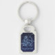 Porte - clé avec le symbole zodiaque pour Sagittarius en bleu argenté doux, recouvert d'étoiles de la constellation, contre un arrière - plan ciel étoilé classé de bleu nuit profond à noir.