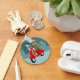 Découvrez sock monkey est sur son scooter vintage rouge Vespa tout en vous donnant un bonjour vague! Cette illustration de singe-chaussette serait idéale pour les fans de Vespa et de singe.