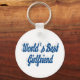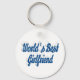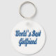 Porte-clés avec 'Meilleure petite amie du monde' en texte 3D bleu mer. Porte-clés ronds et carrés disponibles en plusieurs tailles.