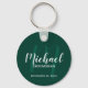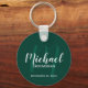 Ajoutez une touche personnelle à votre mariage avec un porte - clé de toiletteurs personnalisé. Ce porte - clé présente le nom des groomsmen personnalisées dans le style de police de script moderne blanc et monogramme dans le style de police de script moderne vert émeraude clair comme arrière - plan avec titre et date mariage en blanc moderne sans serif style de police sur arrière - plan vert émeraude. Aussi parfait pour le meilleur homme, père de la mariée et plus.