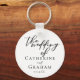 Simplement chic et élégant, notre collection minimaliste de mariage d'hiver comprend une typographie cursive élégante pour votre événement moderne. Impressionnez vos invités avec des faveurs de porte - clé mariage audacieuses en soirée avec un simple script noir.