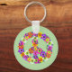 Un signe de paix floral dans des nuances de rose, jaune, orange, violet, vert, blanc et noir orne ce porte-clés en vert doux.