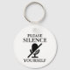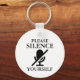 Le porte - clé à bouton rond est équipé d'un microphone sur muet et le texte "S'il vous plaît Silence vous-même" Porte - clés font des cadeaux amusants pour la famille et les amis ou créer pour vous-même.